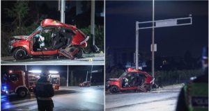 Stravične fotografije: Jedna osoba poginula u saobraćajnoj nesreći, automobil smrskan
