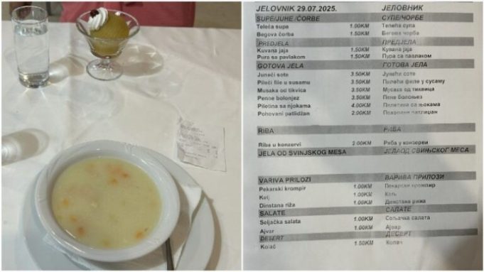 Prema cjenovniku od prije dva dana iz Parlamenta BiH, kuhana jaja ili pura s pavlakom koštaju 1,5 KM, dok od gotovih jela gosti za tričavih 3,5 KM mogu probati juneći sote, pileći file u susamu, musaku od tikvica ili penne bolonjez. Ili dodati još 0,5 KM pa naručiti piletinu s njokama. Oni koji su propustili doručak, mogu izabrati ćevape za 4, ili teleće pečenje za 5,5 KM, uz salaticu koja košta – marku.
