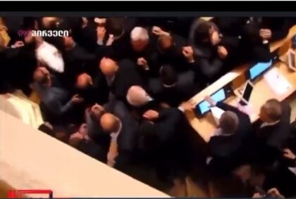 Poslanici parlamentarne većine, nezadovoljni govorom opozicionog poslanika Levana Habejšvilija, koji je optužio aktuelne vlasti da su “prodali” Gruziju Rusiji, pokušali da se fizički obračunaju sa njim. Jedan od poslanika bacio je flašu na Habejšvilija. Uključile su se i poslanice.