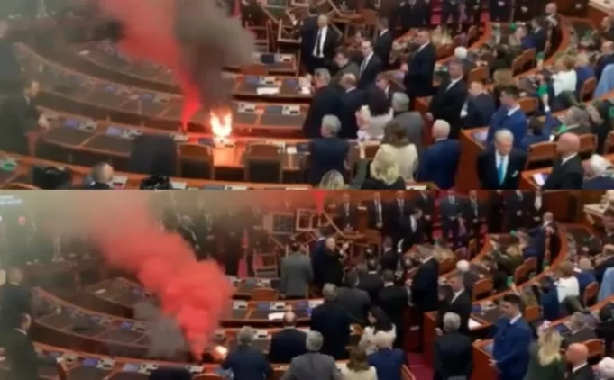 Prema vlastitom obećanju, Sali Berisha je odlučio da ometa svaku sjednicu ovog zakonodavnog tijela. Ovaj put, odlučio se na paljenje baklji i papira, što je izazvalo pravi haos u sali.