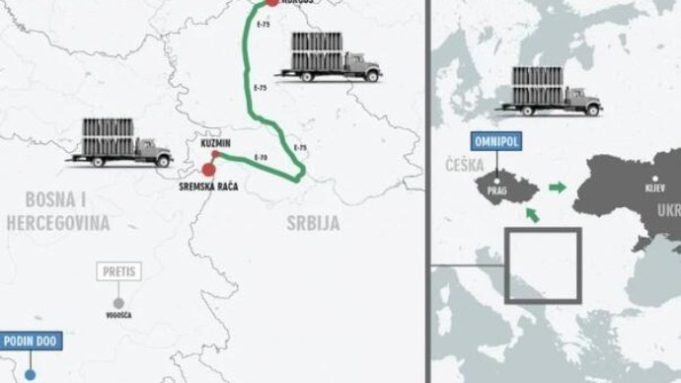 Prema zvaničnoj dokumentaciji do koje je došao BIRN, u kamionima je trebalo da se preveze ukupno 960 granata. Ruta je bila jasno određena: iz sela Kuzmin, autoputem E-70 do Beograda, zatim E-75 do graničnog prijelaza Horgoš, gdje bi ušli u EU.