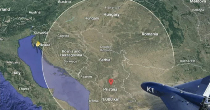 🔹Range: 1,100 km, potentially reaching Belgrade from anywhere in Kosovo
