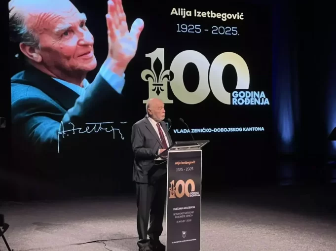 Stjepan Mesić, nedašnji predsjednik Republike Hrvatske, na večeras održanoj svečanoj akademiji povodom stote godišnjice rođenja prvog predsjednika nezavisne Republike Bosne i Hercegovine Alije Izetbegovića, kazao je kako mu je velika čast i zadovoljstvo što je večeras u Zenici i što prisustvuje akademiji povodom obilježavanja “jednog stoljeća od rođenja Alije Izetbegovića”.