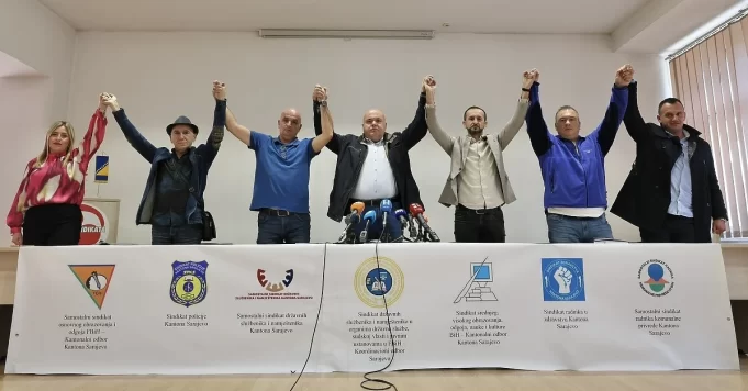 Dodaje da ovih sedam sindikata zastupa ukupno 25.000 radnika, računajući one koji primaju platu iz budžeta KS i one koji platu primaju iz Fonda Zavoda zdravstvenog osiguranja Kantona Sarajevo i komunalne privrede Kantona Sarajevo.