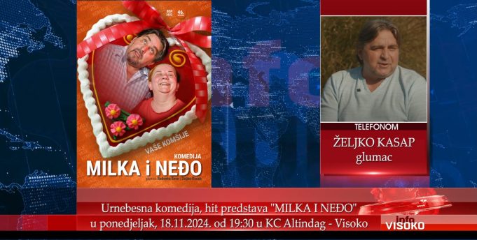 Predstava “Milka i Neđo” u našem gradu će biti odigrana u ponedjeljak, 18. novembra od 19 sati i 30 minuta u KC Altindag-Visoko.