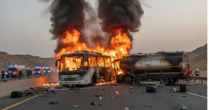 Horrific Saudi Arabia 🇸🇦 bus crash : Bus-tanker collision near #Medina, #Saudi_arabia killing 42 Indian #Umrahpilgrims mostly from Hyderabad, Telangana including 11 women and 10 children with one 24-year-old survivor. Prayer for those who lost their lives. pic.twitter.com/gIgCgpY1jx