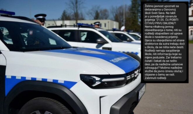 U učionici Osnovne škole “Sveti Sava” u Istočnom Sarajevu jučer je na tabli ostavljena stravična poruka: “21.05. ću pobiti čitavu prvu smjenu”.