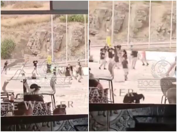 Na videozapisima se vidi skupina navijača kako udara jednog koji leži na podu. Sukob nije dugo trajao jer je policija brzo došla na mjesto događaja.