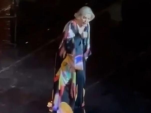 Videosnimke snimljene s tribina pokazuju kako se 86-godišnja folk pjevačica srušila na pozornici tokom koncerta, prenosi HINA.