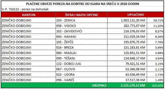 U 2018.godini je Općina Visoko planirala po osnovu poreza na dobitke od igara na sreću naplatiti 70.000 KM. U međuvremenu je u kasu počelo pristizati više novca.