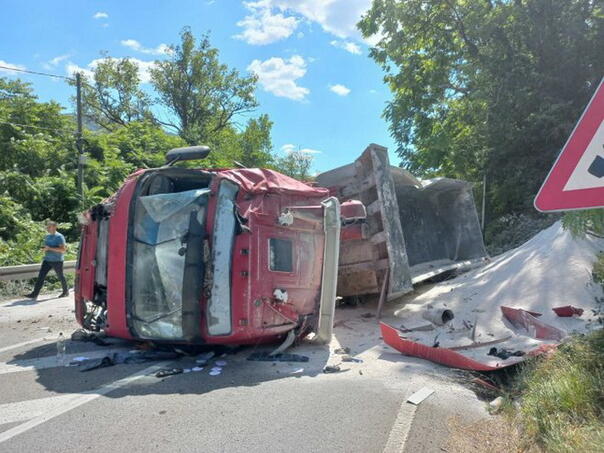 Kamion se prevrnuo, što je dovelo do potpune obustave saobraćaja na ovoj dionici.