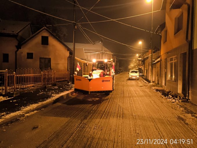 Sinoć iza ponoći pa do jutarnjih sati posipnoplužne jedinice JKP Visoko su čistile snijeg i posipale industrijsku so na područjima djelovanja: na gradskim ulicama i trotoarima, i području LOT2 – Gračanica.