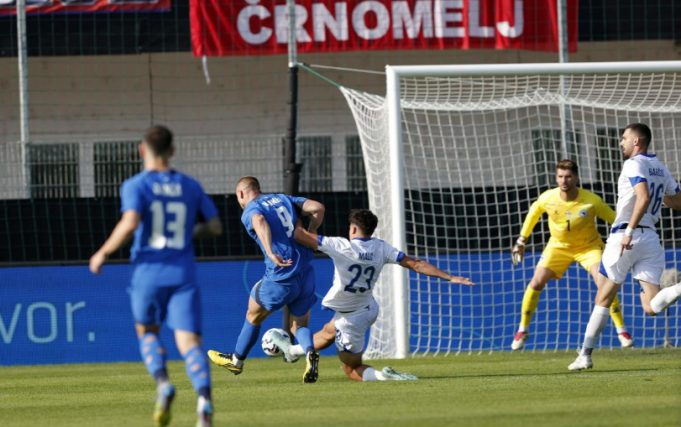 Slovenci su zaprijetili već na samom početku susreta preko Kramera koji je izbio sam pred Vasilja, ali je naš golman odlično intervenisao. U 15. minuti domaći su zatresli mrežu preko Petra Stojanovića, no pogodak je opravdano poništen zbog ofsajda.