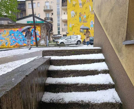 Snažno nevrijeme praćeno gradom pogodilo je danas područje Bihać, gdje je u kratkom vremenskom periodu zabilježena intenzivna tuča čija su zrna dostizala veličinu od nekoliko centimetara.