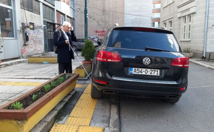 Nepropisno parkiranje u Sarajevu nije novost. Parkirana vozila često se mogu vidjeti i u onim rijetkim dijelovima grada sa taktilnim vodilicama, ali parkiranje direktno ispred udruženja ukazuje na to da pojedini vozači nemaju apsolutno nikakvu svijest o tome da svojim ponašanjem stvaraju problemi drugim ljudima.