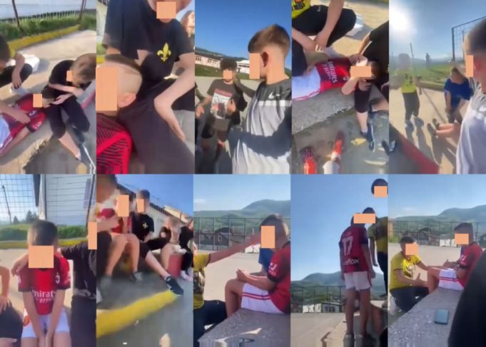 Video je “zamućen” zbog zaštite aktera snimka, prije svih žrtve, s obzirom na to da se radi o djeci osnovnoškolskog uzrasta i maloljetnim osobama-.