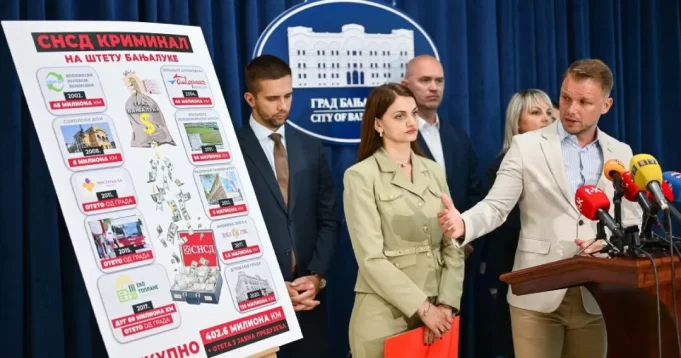 Draško Stanivuković, gradonačelnik Banjaluke, tokom konferencije za novine, istakao je da je Banjaluka, kako kaže, kriminalom SNSD-a ostala bez 402 miliona maraka i tri javna preduzeća.