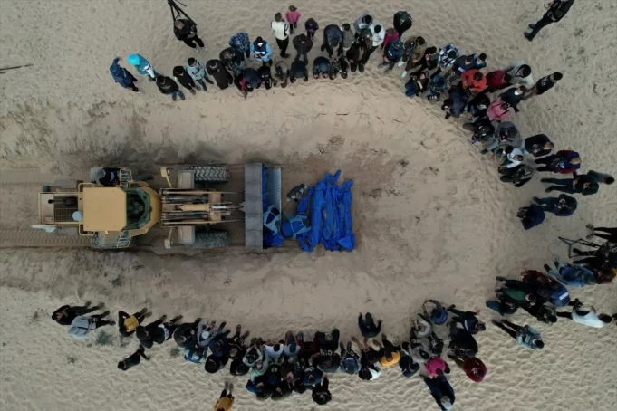 Tijela palestinskih žrtava ukopana su na groblju Tel al-Sultan u Rafahu, 26. decembra 2023. godine. Masovna ukop žrtava održan je nakon prijema tijela 80 Palestinaca koje su ubile izraelske snage.