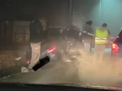 Prilikom sudara, automobil koji je završio na šinama je oborio svjetleću reklamu. Ostala dva automobila su završila okrenuta u suprotnom pravcu.