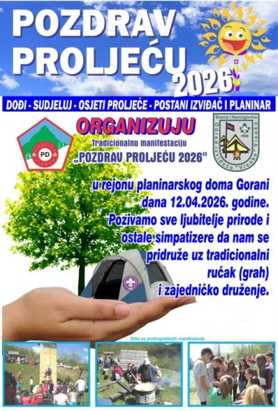 Pridružite nam se tradicionalnoj manifestaciji “Pozdrav proljeću 2026” u nedjelju, 12. 04. 2026. godine, u rejonu planinarskog doma Gorani.