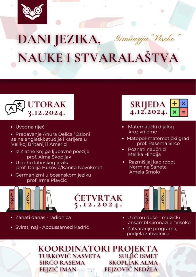 Danas su u Gimnaziji “Visoko” počeli “Dani jezika, nauke i stvaralaštva”, riječ je o projektu, koji je održavan je i ranijih godina, ali ove je donio neke novine.