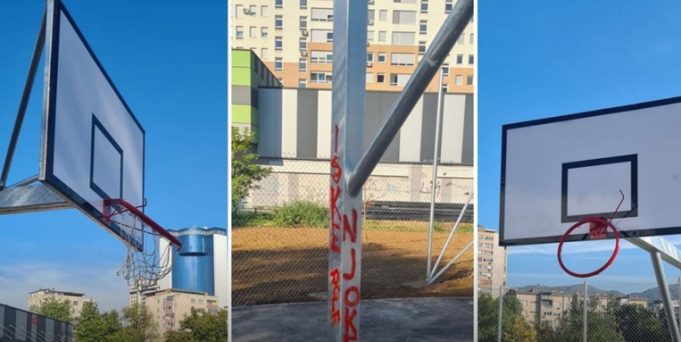 Tokom noći je nepoznata osoba ili više njih uništila obruče koševa, iscrtala konstrukcije koševa pogrdnim riječima.