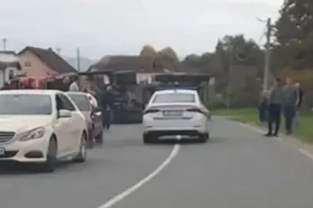 Iz još neutvrđenih okolnosti, kamion se prevrnuo.