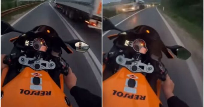 Na samom početku pretiče putnički automobil, a potom i kamion na “duploj punoj” liniji, a kod vidljivih saobraćajnih znakova ograničenja od 60 i 70 km/h, on vozi 276 i 278 km/h.